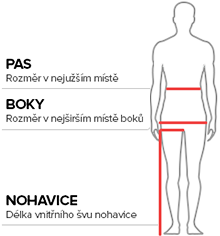 Pas - změřte se kousek pod Vaším přirozeným pasem, tak kde obvykle sedí Vaše kalhoty.