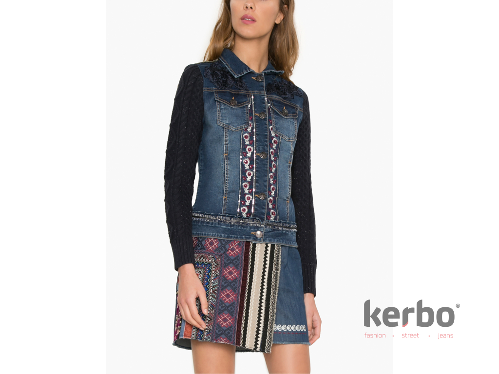 Dámská bunda DESIGUAL EXOTIC RUFFLE 5161 DENIM MEDIUM DARK