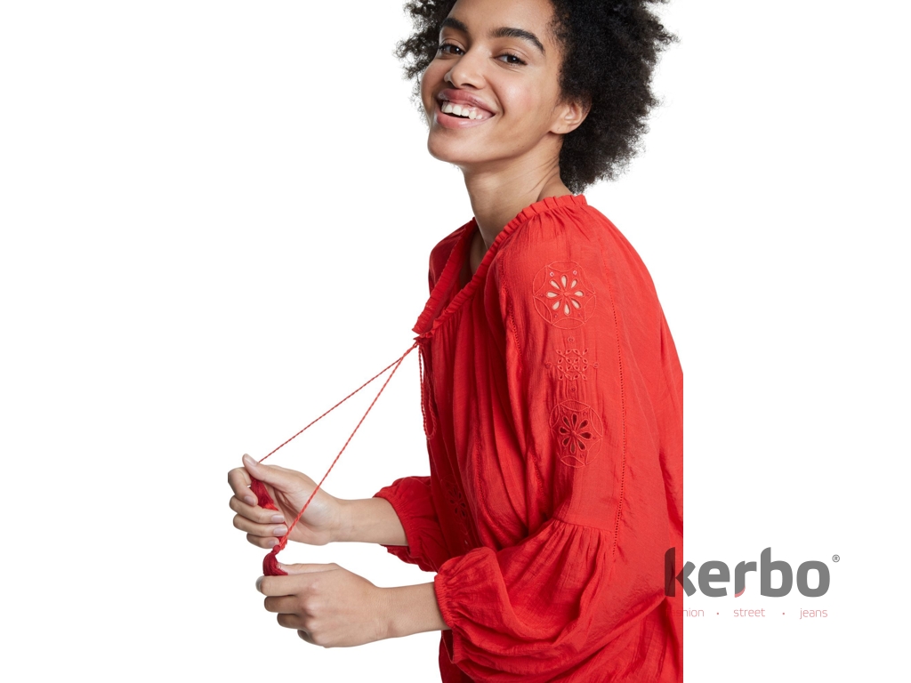 Červená dámská halenka Venecia od značky Desigual. Volný splývavý střih v kombinaci s lehkým materiálem Vám zaručuje maximální pohodlí. Jemné flitry a krajkové zdobení dodává halence na eleganci. Halenka zakryje Vaše drobné nedokonalosti a vy se budete cítit neodolatelně.