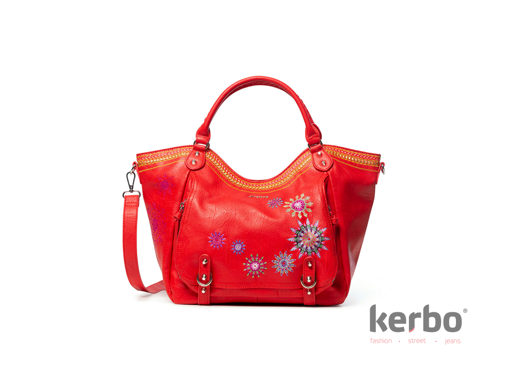 Červená dámská kabelka Ada Rotterdam s výšivkami mandaly od značky Desigual. Kabelku v oblíbeném elegantním tvaru si doslova zamilujete. Stane se doplňkem Vašich sportovních i elegantních outfitů.