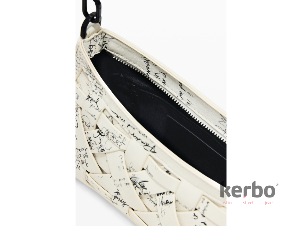 Designová dámská kabelka Indio Alsacia od značky Desigual. Tento kousek vyniká svým precizně propracovaným vzhledem, který dává klasickému formátu novou, kreativní dimenzi. Dekorativní pletený materiál v kombinaci s potiskem nápisů vytváří nepřehlédnutelný design, který okouzlí originální estetikou a dodá outfitu výrazný osobitý charakter. Kabelka tak působí svěže i sebevědomě a stane se elegantním doplňkem, který podtrhne Váš styl.