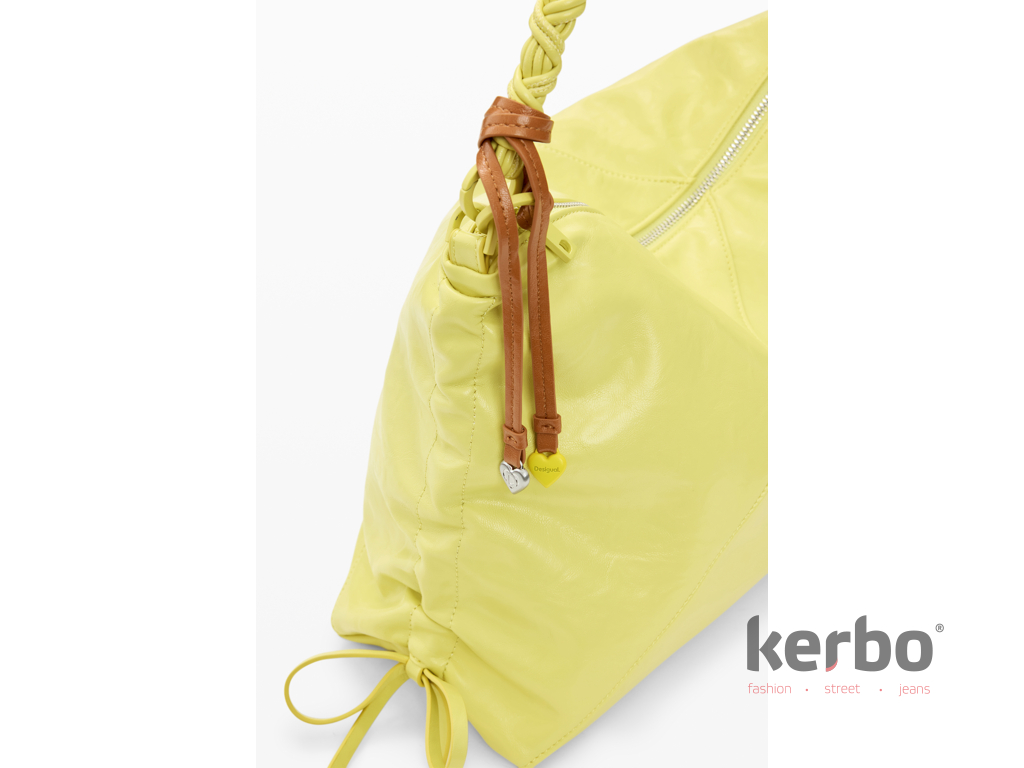 Prostorná dámská kabelka Rodio Leiria Lime od značky Desigual. Tato kabelka zaujme výraznou barvou a originálním designem, který okamžitě rozzáří celý outfit. Hladká struktura v kombinaci s dekorativními šňůrkami a pleteným uchem dodává kabelce osobitý charakter typický pro značku Desigual a dělá z ní nepřehlédnutelný módní doplněk.