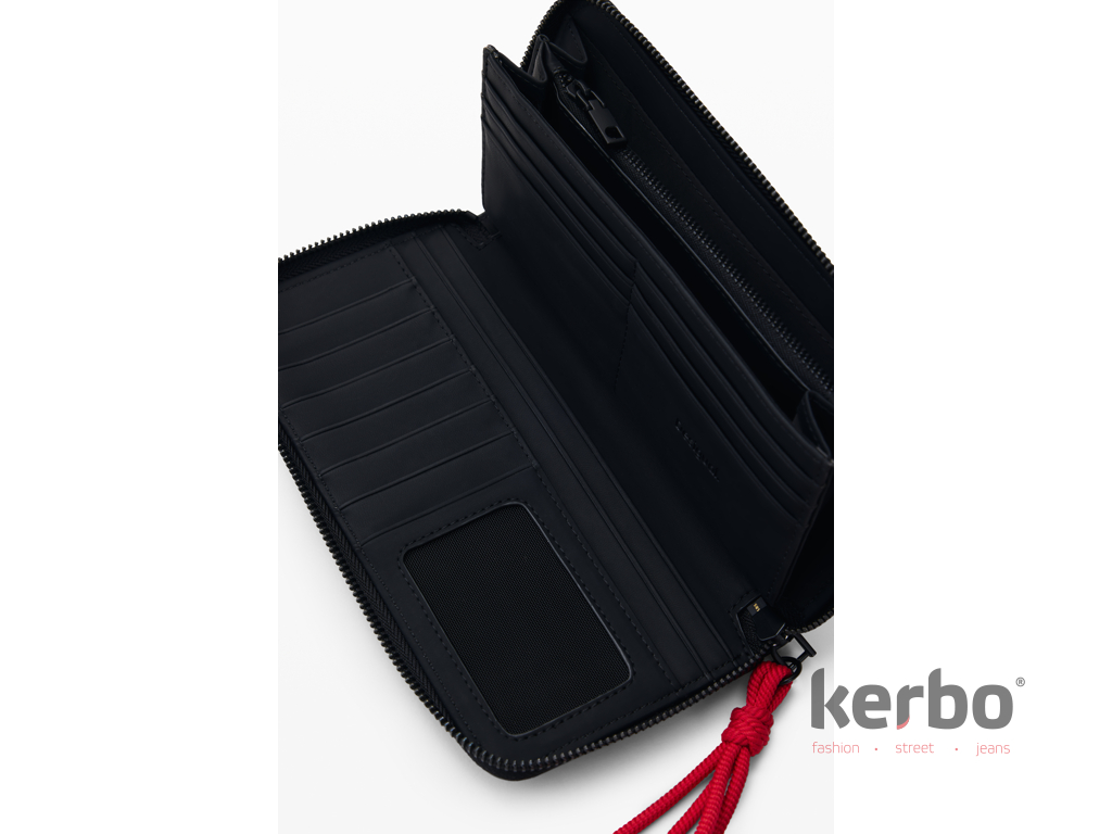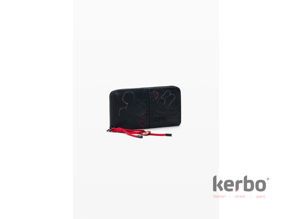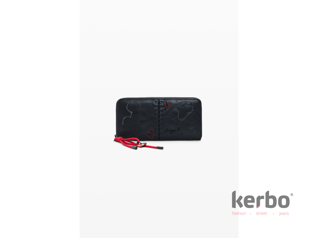 Krásná dámská peněženka All Mickey Fiona od značky Desigual. Tato peněženka zaujme svým jedinečným vzhledem díky precizně zpracovaným detailům, které dodávají doplňku charakter a osobitý šmrnc. Hravé a originální prvky podtrhují kreativní design značky, zatímco promyšlené členění prostoru zajišťuje přehledné uložení karet, hotovosti a drobností.
