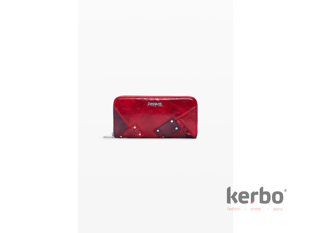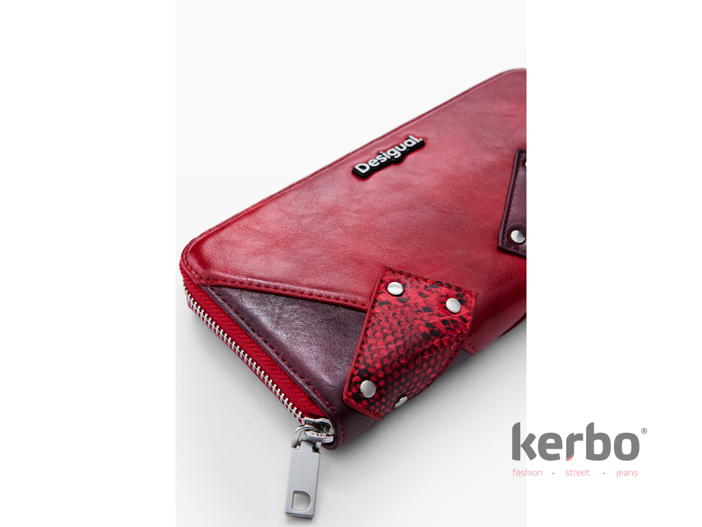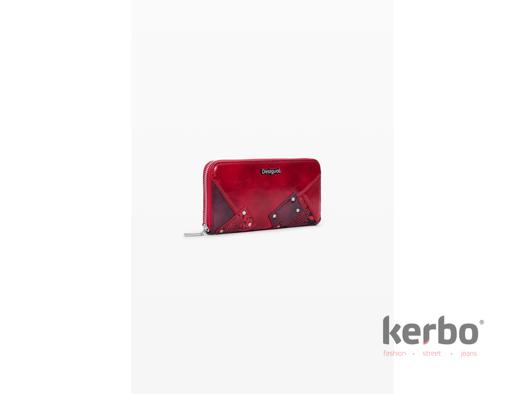 Luxusní dámská peněženka Glow Red Fiona od značky Desigual. Tato peněženka představuje originální a propracovaný design, který kombinuje patchwork různých tónů s kovovými cvočky a vytváří tak výrazný nevšední model. Prostorově promyšlený interiér s několika přihrádkami nabízí přehledné uložení Vašich karet, hotovosti i drobností, zatímco celkový vzhled působí kreativně a osobitě. Tento model je ideální volbou pro ty, kdo hledají funkční peněženku s jedinečným charakterem.