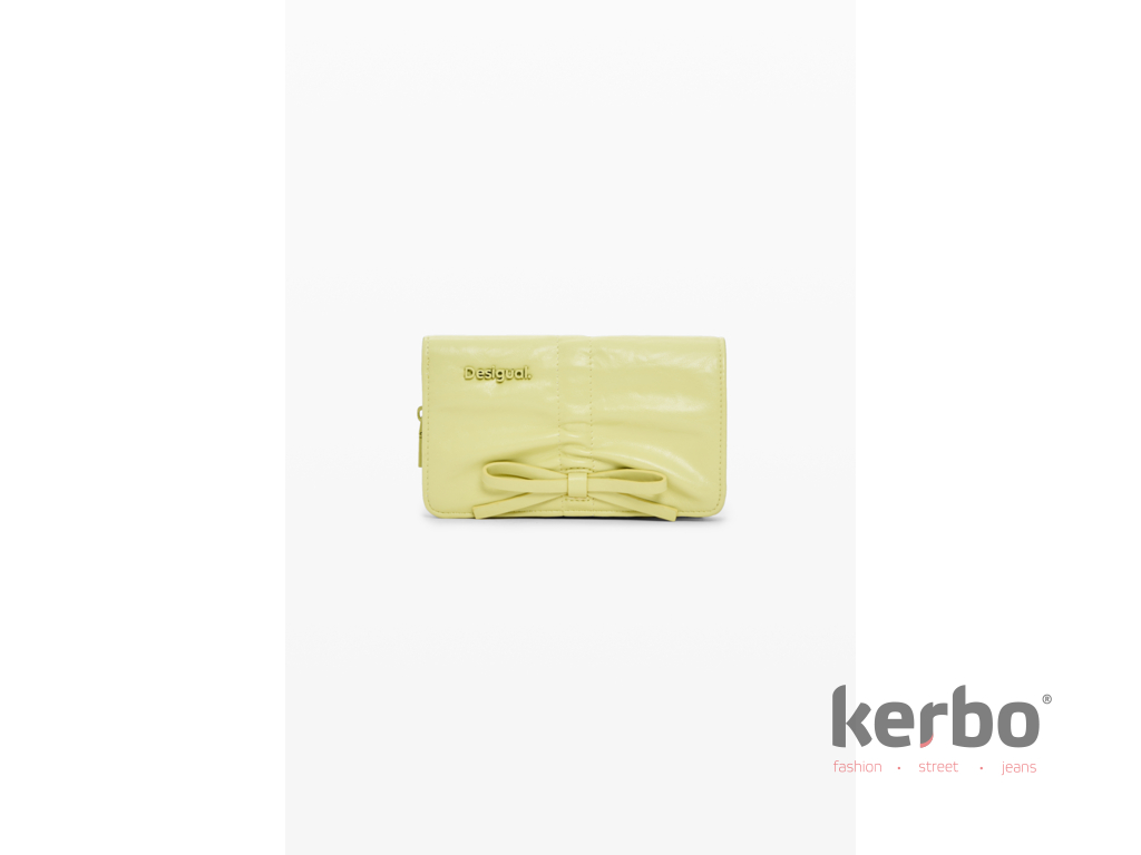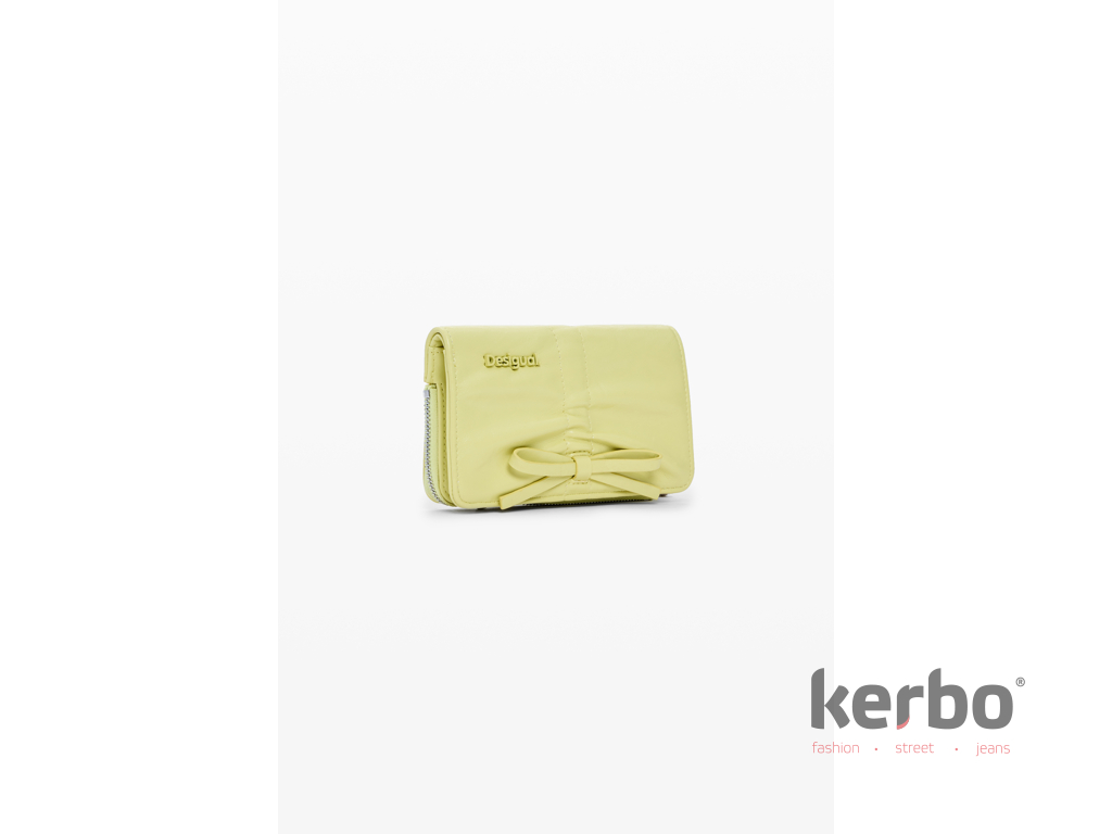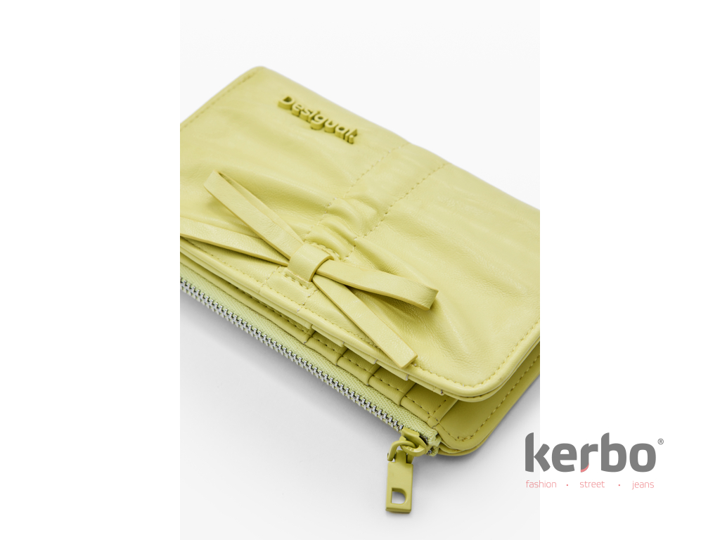 Dámská peněženka Rodio Emma 2.0 Lime od značky Desigual. Tato peněženka s ozdobnou mašlí a jemným řaseným detailem působí svěže a originálně, ideální jako stylový doplněk ke kabelce. Zapínání na zip a přehledné uspořádání přihrádek pro karty dodávají peněžence praktičnost, zatímco hravý design s mašlí podtrhuje osobitý charakter značky.