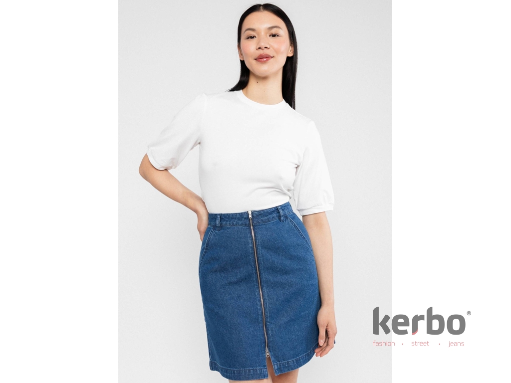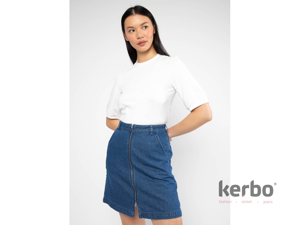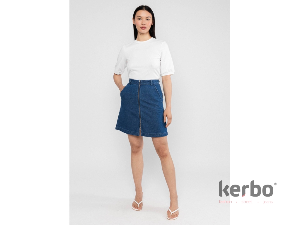 Elegantní dámská sukně od značky BlutsgeschwisterTato denimová sukně působí svěže a nadčasově a snadno se stane výrazným prvkem Vašeho každodenního outfitu. Tvarovaný pas krásně sedí na postavě a lehce rozšířená linie dodává siluetě ženský a přirozený vzhled, zatímco přední dvoucestný zip přináší moderní detail s možností variabilního stylingu.