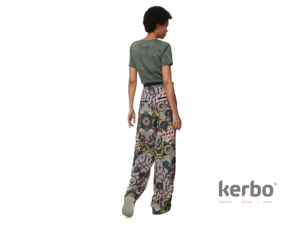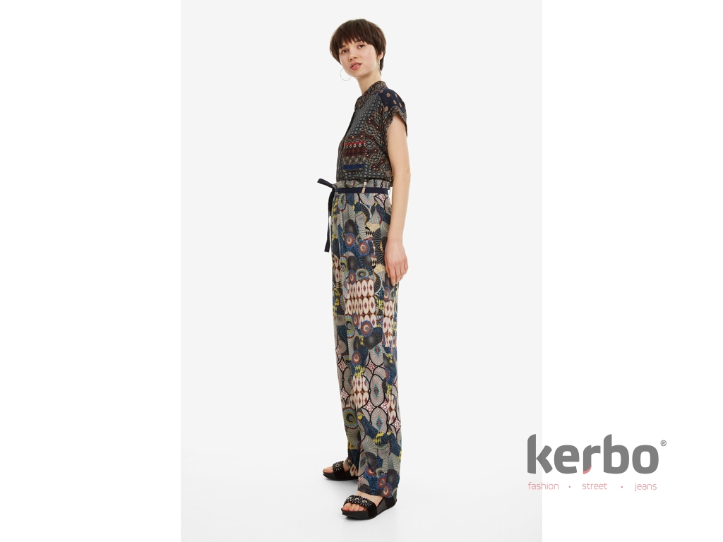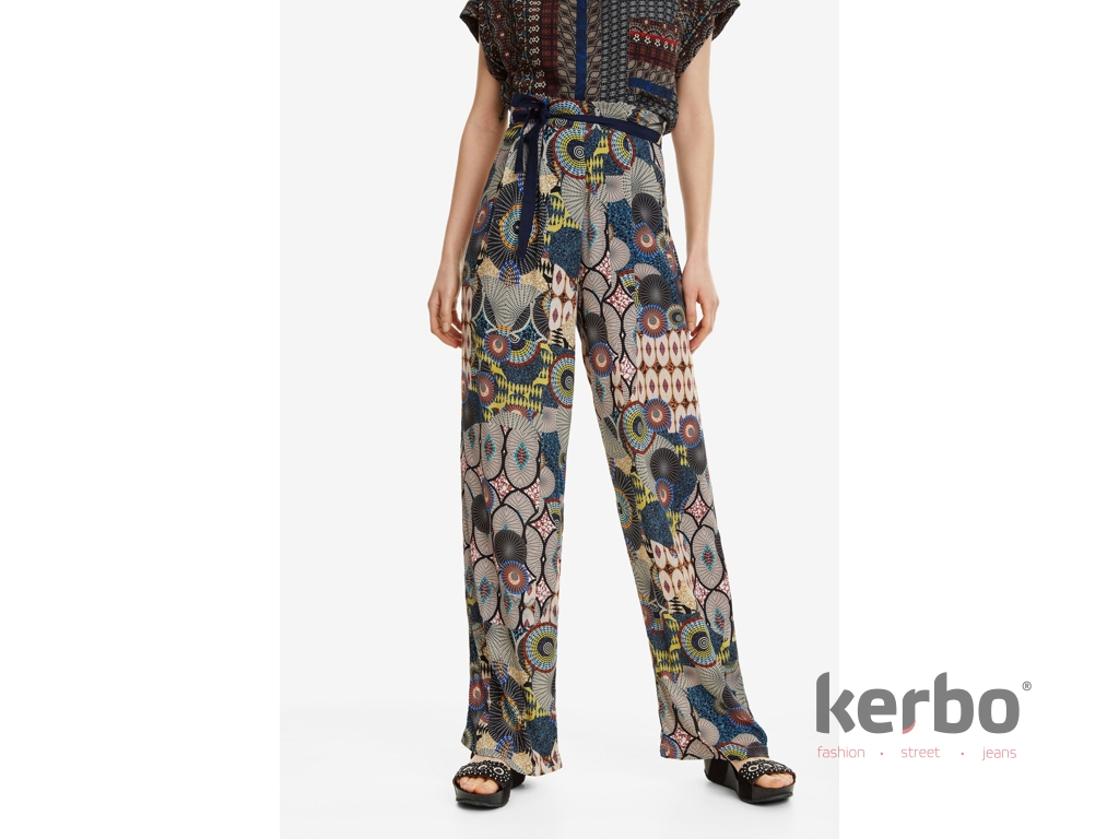 Dámské plátěné kalhoty Debora v nepřehlédnutelném designu od značky Desigual. . V těchto kalhotách budete nepřehlédnutelná a originální. Díky širokým a volným nohavicím budete mít maximální pohodlí.  Milujete výstřednost? Přijďte si pro tenhle super módní kousek.
