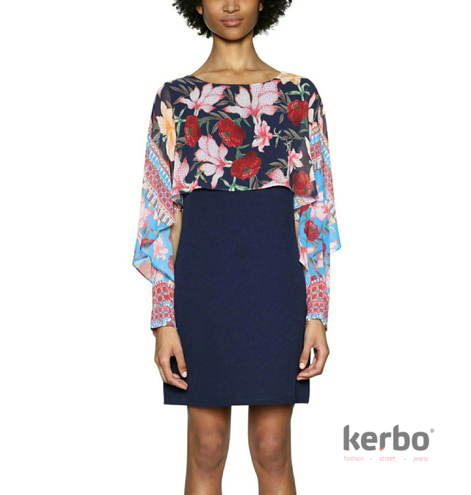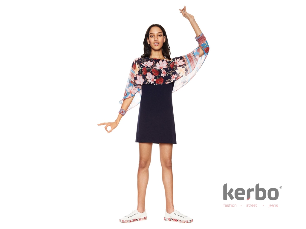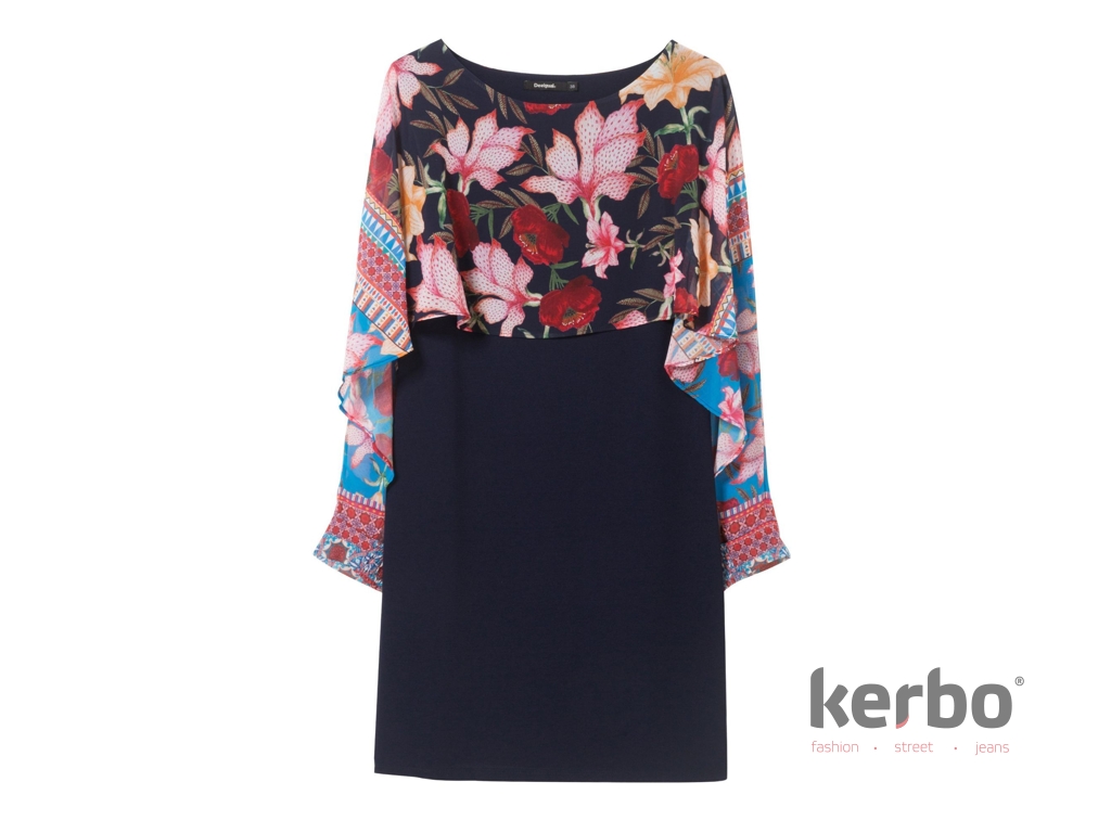 Jarní šaty  Olivia s potiskem květin od značky Desigual. Šaty jsou díky atypickým rukávům velmi originální. Šaty využijete do práce, města i společnosti.​