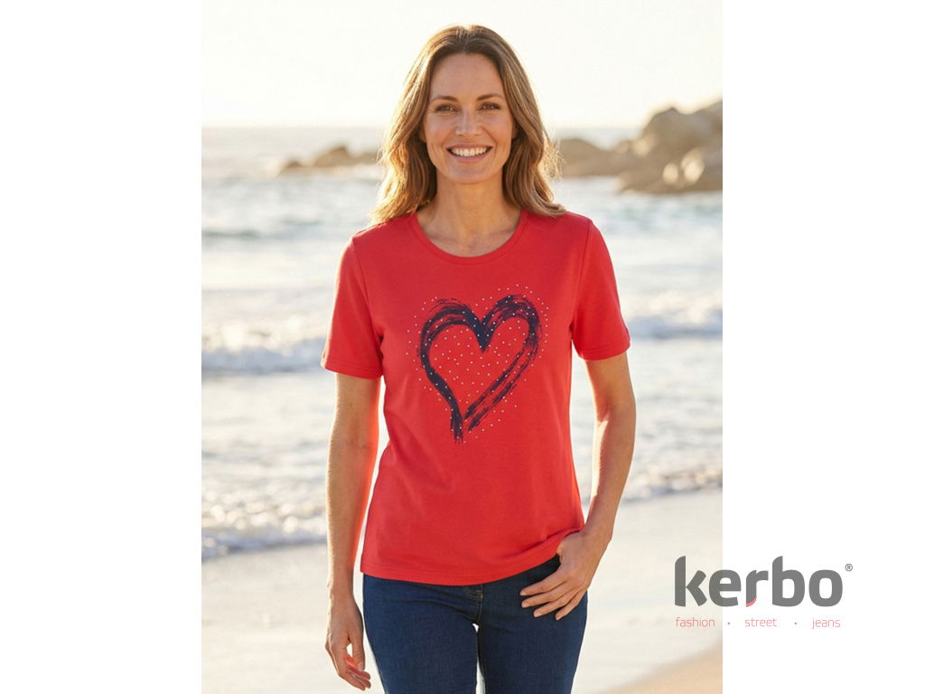Krásné dámské triko od značky Hajo. Toto triko s motivem srdcem ozdobeným kovovými cvočky poutá pozornost svým energickým designem a zároveň si zachovává nadčasovou ženskost. Materiál je příjemný na dotek a střih poskytuje volnost a pohodlí, které oceníte při každodenním nošení.
