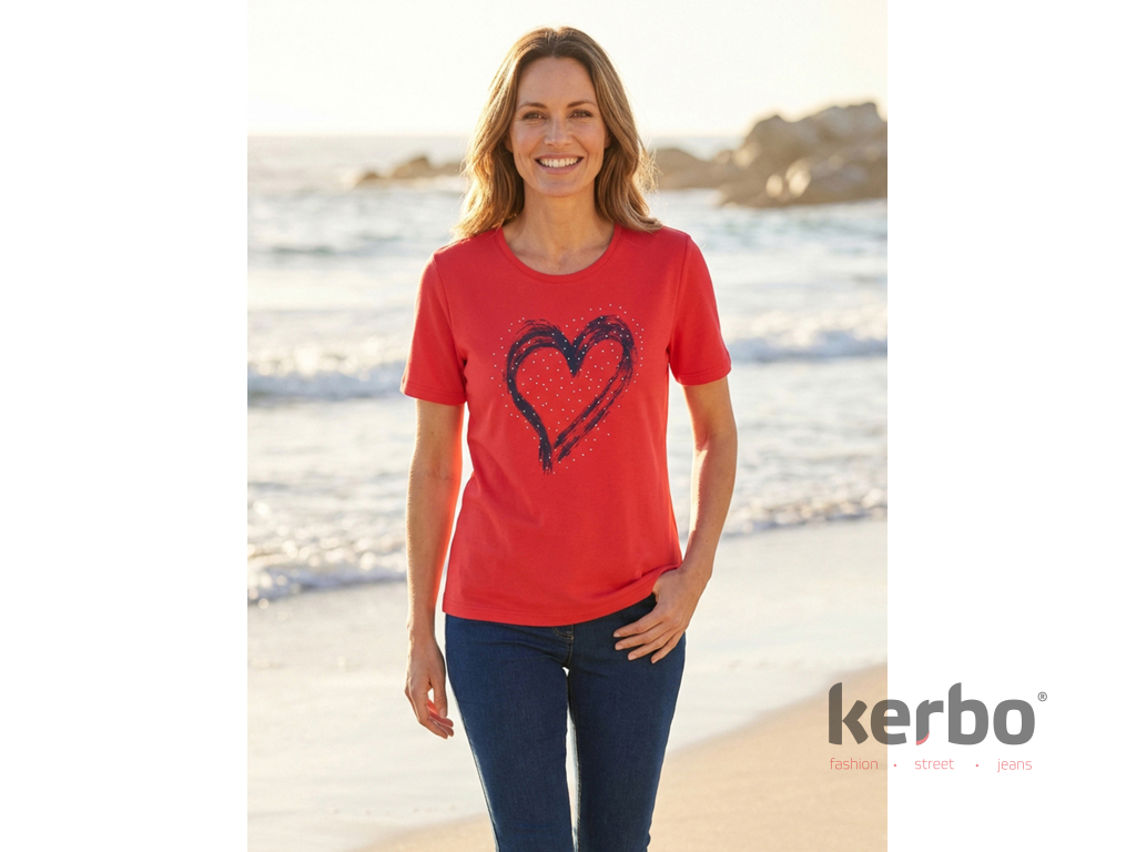 Krásné dámské triko od značky HajoToto triko s motivem srdcem ozdobeným kovovými cvočky poutá pozornost svým energickým designem a zároveň si zachovává nadčasovou ženskost. Materiál je příjemný na dotek a střih poskytuje volnost a pohodlí, které oceníte při každodenním nošení.
